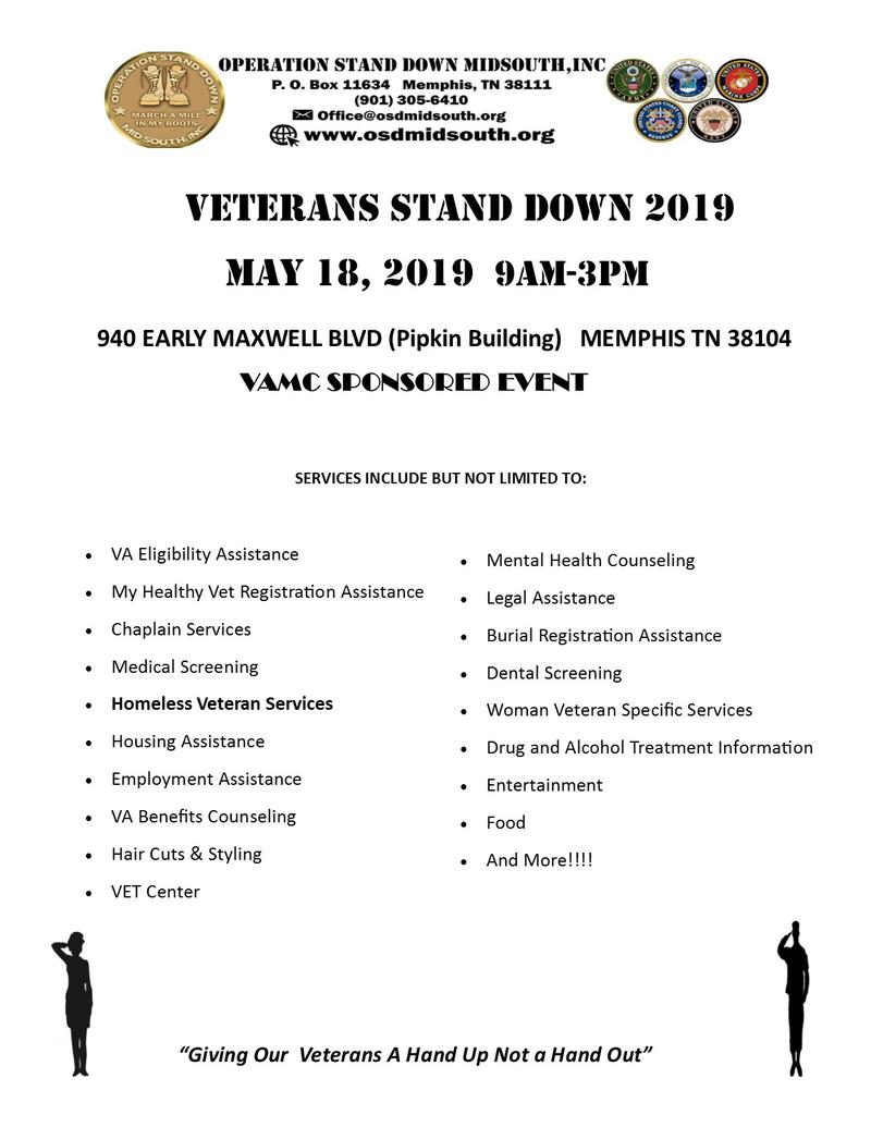 Volunteers are needed.  Please contact Operation Stand Down at 901 305-6410.